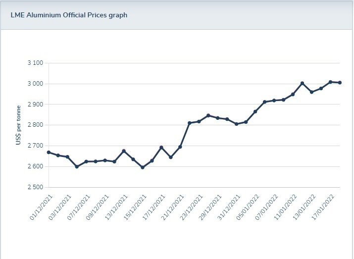 Alumiiniumi kokkuostuhind tõuseb. 2022. aastal kuni 18. jaanuarini tõusis alumiiniumi hind metallibörsidel. Jaanuari esimestel päevadel oli alumiiniumi hind umbes 2800 dollarit tonn ja 18. jaanuaril ulatus alumiiniumi hind 3000 dollarini tonnist. Võib öelda, et sel aastal tõusis alumiiniumi hind 3 nädalaga ca 7-8%. Sel perioodil tõusid erinevates riikides vastavalt alumiiniumi jäätmete kokkuostuhinnad. Alumiiniumi kokkuostu on palju, seega on alumiiniumijäätmete hinnad erinevad. Veebilehe scraprice.com andmetel oli 19. jaanuaril 2022 alumiiniumi kokkuostu kõrgeim hind Poolas - kuni 2600 eurot kilogramm. See oli elektrialumiiniumi vanaraua hind. Elektrotehniline alumiinium sisaldab üle 99% alumiiniumi, seega on sellise alumiiniumi jäätmete hind kõrge. 2022. aastast 18. jaanuarini tõusis alumiiniumi hind metallibörsidel. Jaanuari esimestel päevadel oli alumiiniumi hind umbes 2800 dollarit tonn ja 18. jaanuaril 3000 dollarit tonn. Võib öelda, et tänavu tõusis alumiiniumi hind 3 nädalaga ca 7-8%. Sel perioodil tõusid erinevates riikides vastavalt alumiiniumijäätmete kokkuostuhinnad. Alumiiniumi vanaraua on palju, seega on alumiiniumijäätmete hinnad erinevad.